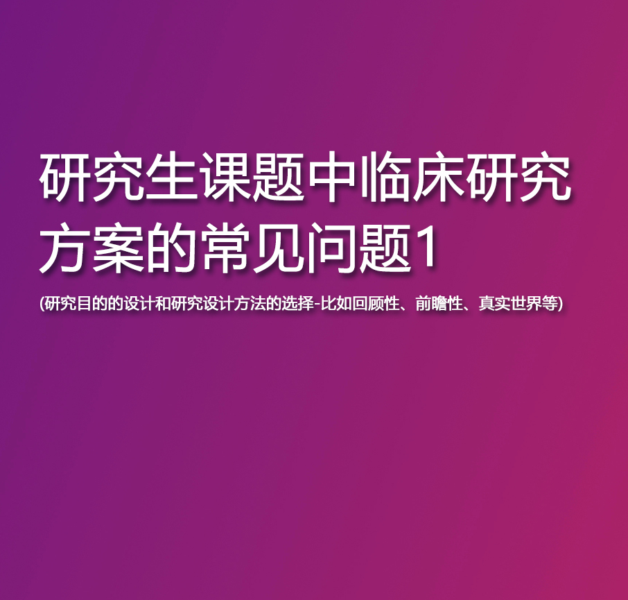 本期课程重点讲解研究生课题中临床研究方案的常见问题1(研究目的的设计和研究设计方法的选择-比如回顾性、前瞻性、真实世界等),欢迎收看!